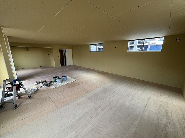 会社さんの中にある食堂の天井・壁・床の内装仕上げを行いました